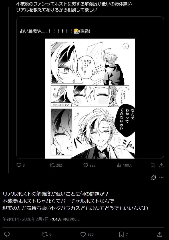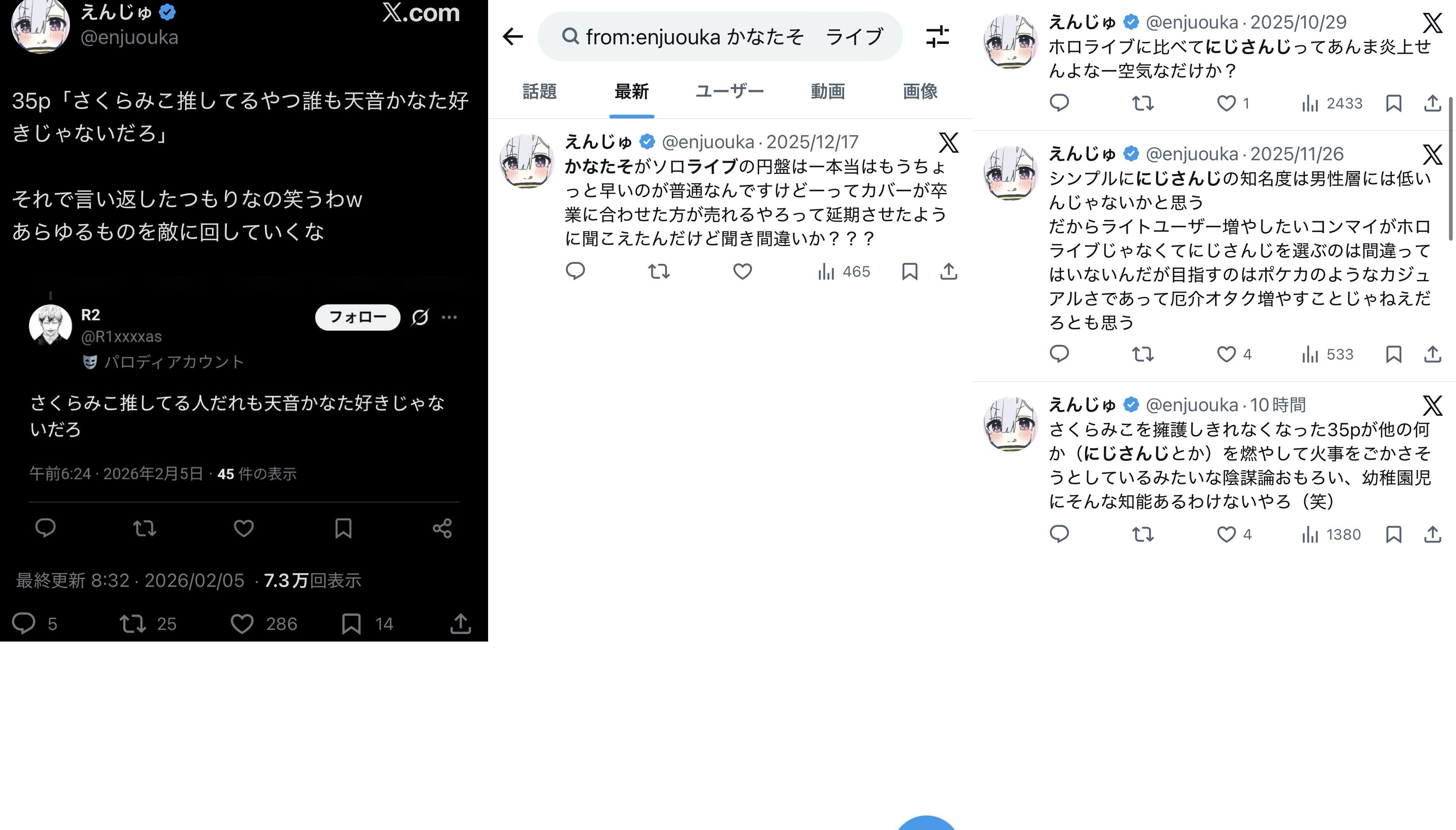| … | 5無念Nameとしあき26/02/07(土)15:35:34No.1385541673そうだねx27>まあホロで問題が起きるのはにじさんじのせいだと考えてる連中ですから |