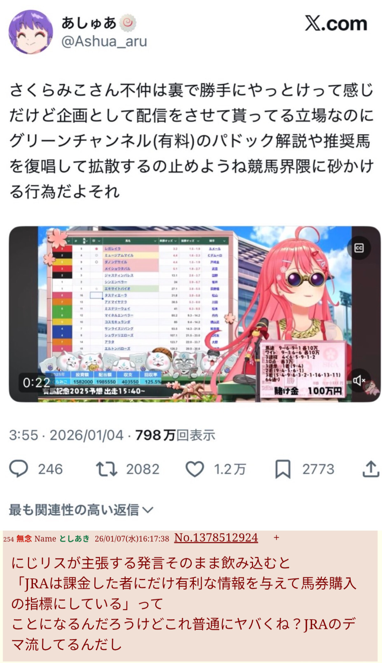 | … | 38無念Nameとしあき26/02/07(土)17:01:36No.1385559438+>やはりJRAに謝るしかないんじゃない? |