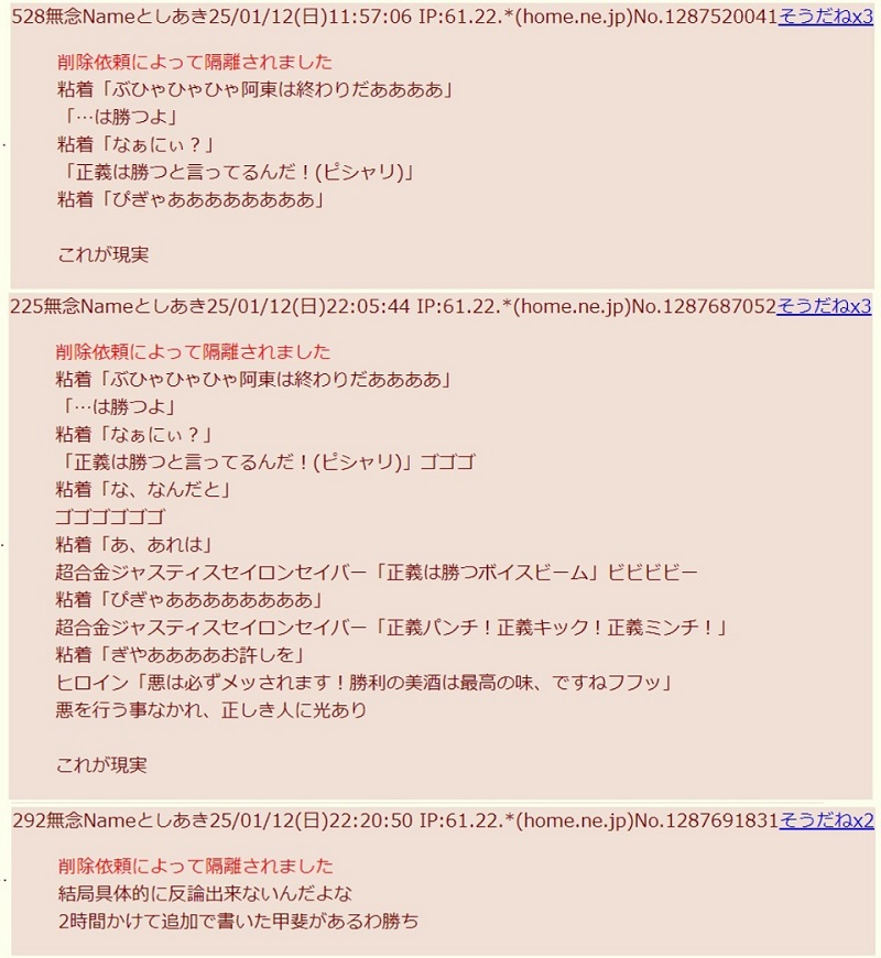 | … | 56無念Nameとしあき26/02/08(日)02:55:29 IP:144.91.*(lan-do.ne.jp)No.1385699357+公益性云々で垢削除されるかと思ったけど |
