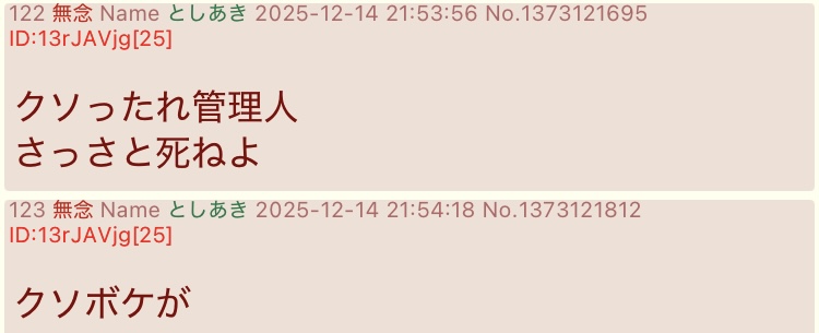 | … | 140無念Nameとしあき26/02/08(日)13:18:47No.1385787540+土下座大公開!やオフ会トンズラ〜辺りから狂気が加速してるな |