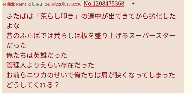 | … | 112無念Nameとしあき26/02/08(日)13:00:49No.1385782951そうだねx1>自分は王って認識だから荒らしと思ってないんスよ |