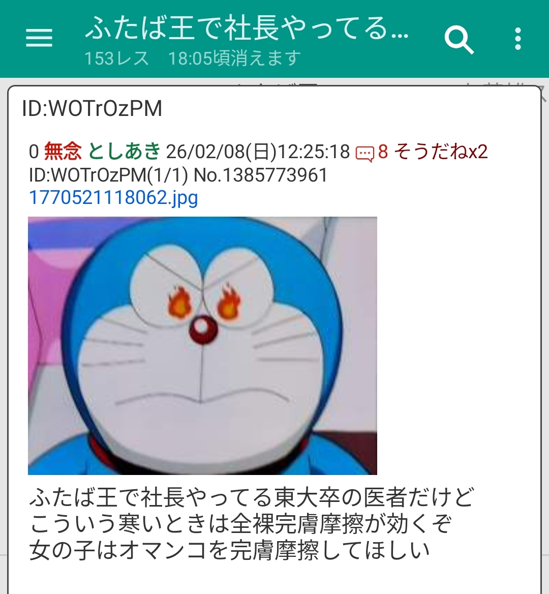 | … | 145無念Nameとしあき26/02/08(日)13:36:13No.1385791615+>ふたば王で社長やってる東大卒の医者だけど |