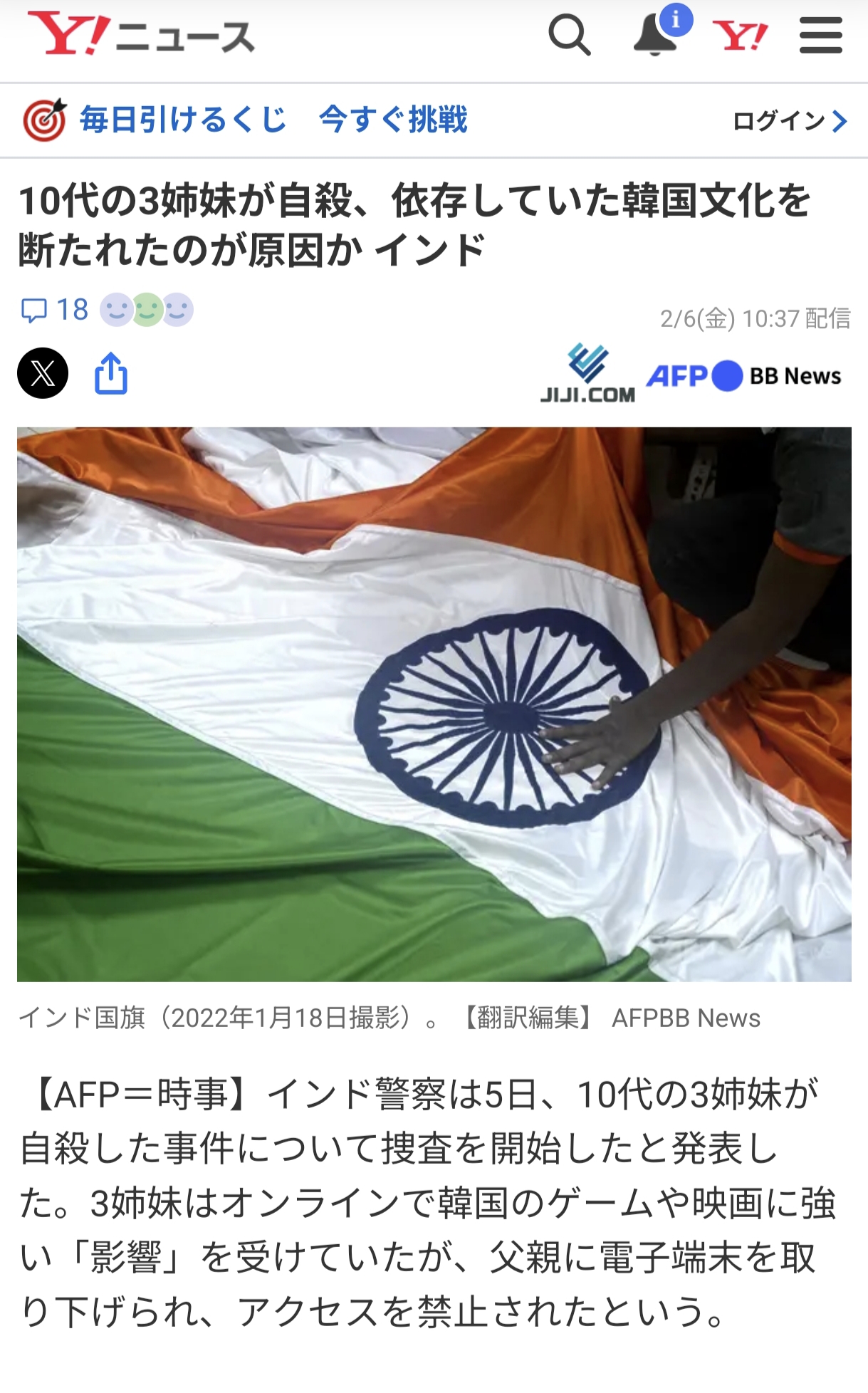 韓国文化を断たれたインド人の三姉妹が飛び降り自殺をしてしまうという事件が発生削除された記事が1件あります.見る