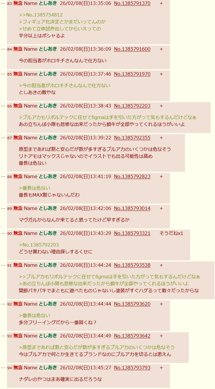 | … | 84無念Nameとしあき26/02/08(日)13:30:34No.1385790318+>せんせぇはフィギュアスレでも厄介者扱いわよ |