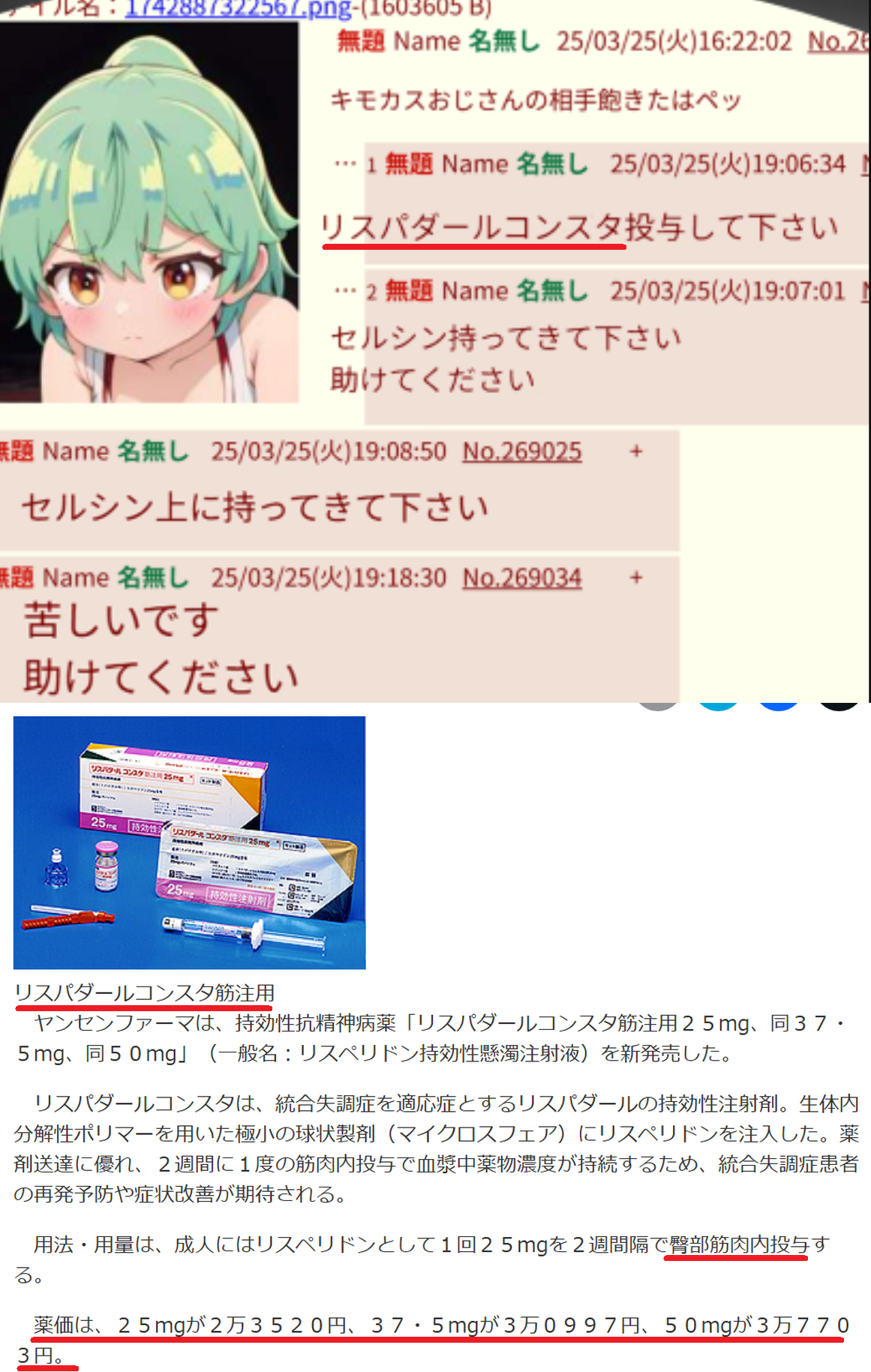 | … | 48無念Nameとしあき26/02/08(日)15:43:00No.1385820531そうだねx1 1770532980244.png-(1338011 B) >詳細は省くがなりすましで自分の飲んでる薬を他人に擦り付けようとして速攻バレたあげく画像から薬の種類を特定された |