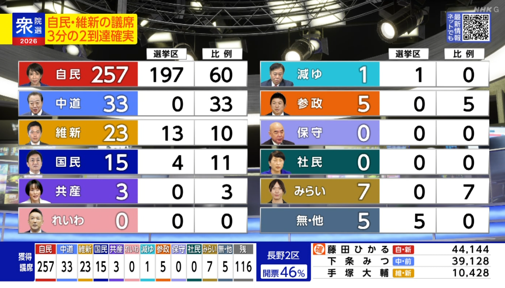 | … | 46無念Nameとしあき26/02/08(日)22:09:09No.1385958475そうだねx1>立憲民主党の票ほとんど吸い取ったから |