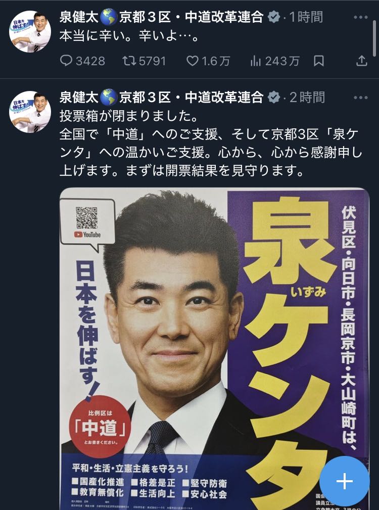 | … | 28無念Nameとしあき26/02/08(日)22:07:30No.1385957607+組織票という地力と限界をなんか知ったよ… |