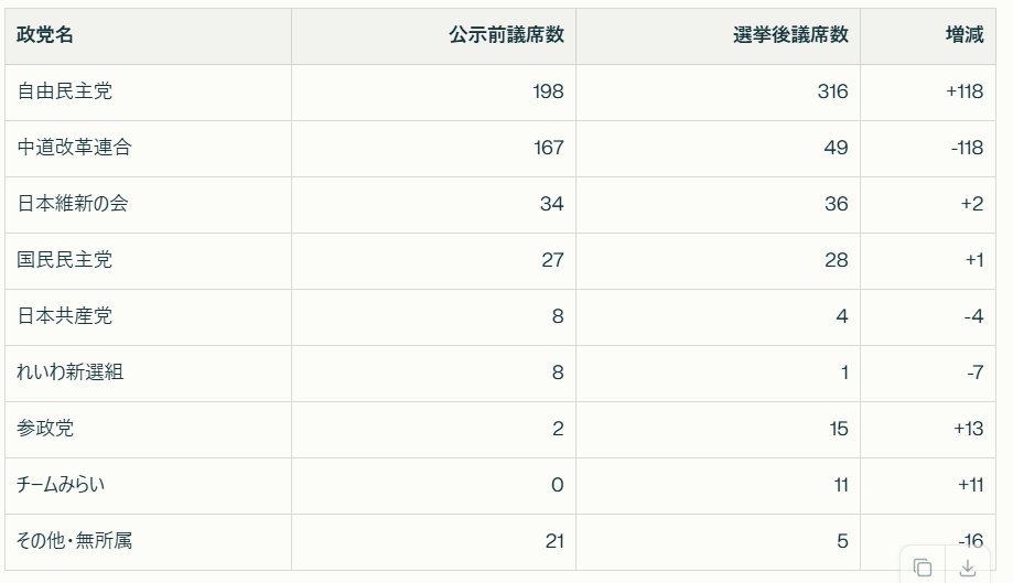 | … | 93無念Nameとしあき26/02/09(月)11:03:51No.1386091903+自民とチームみらい小選挙区で当選しすぎて比例余ったので他の党に割り振りて… |