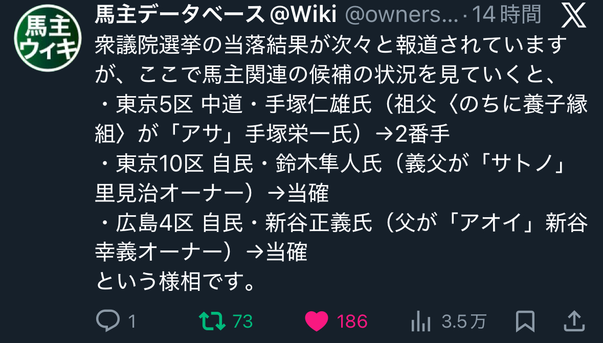 | … | 23無念Nameとしあき26/02/09(月)10:12:34No.1386083521+>https://x.com/tospo_keiba/status/2020661013901873180 |
