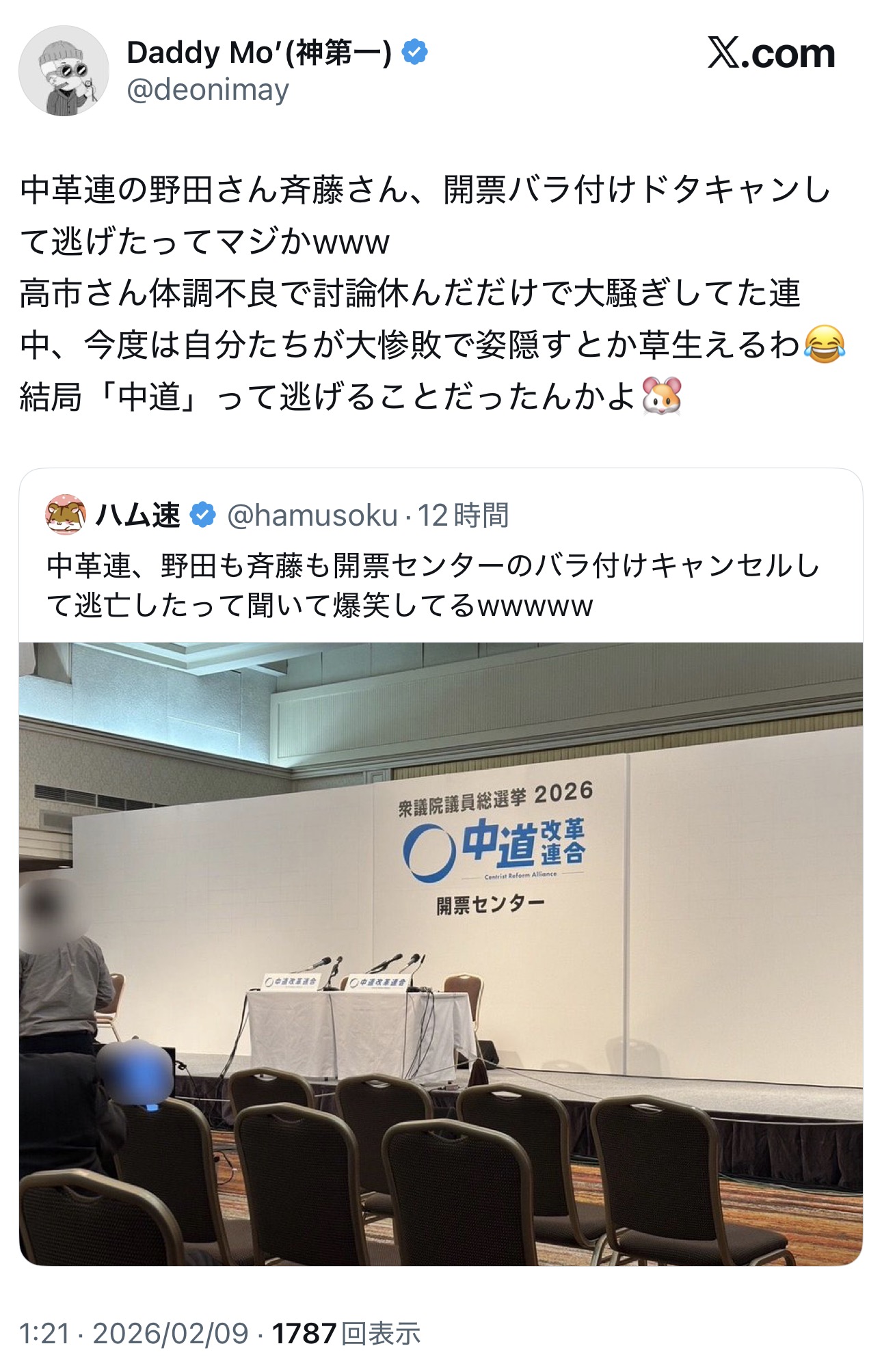 | … | 39無念Nameとしあき26/02/09(月)10:29:46No.1386086220そうだねx1>#中道もういいじゃん |