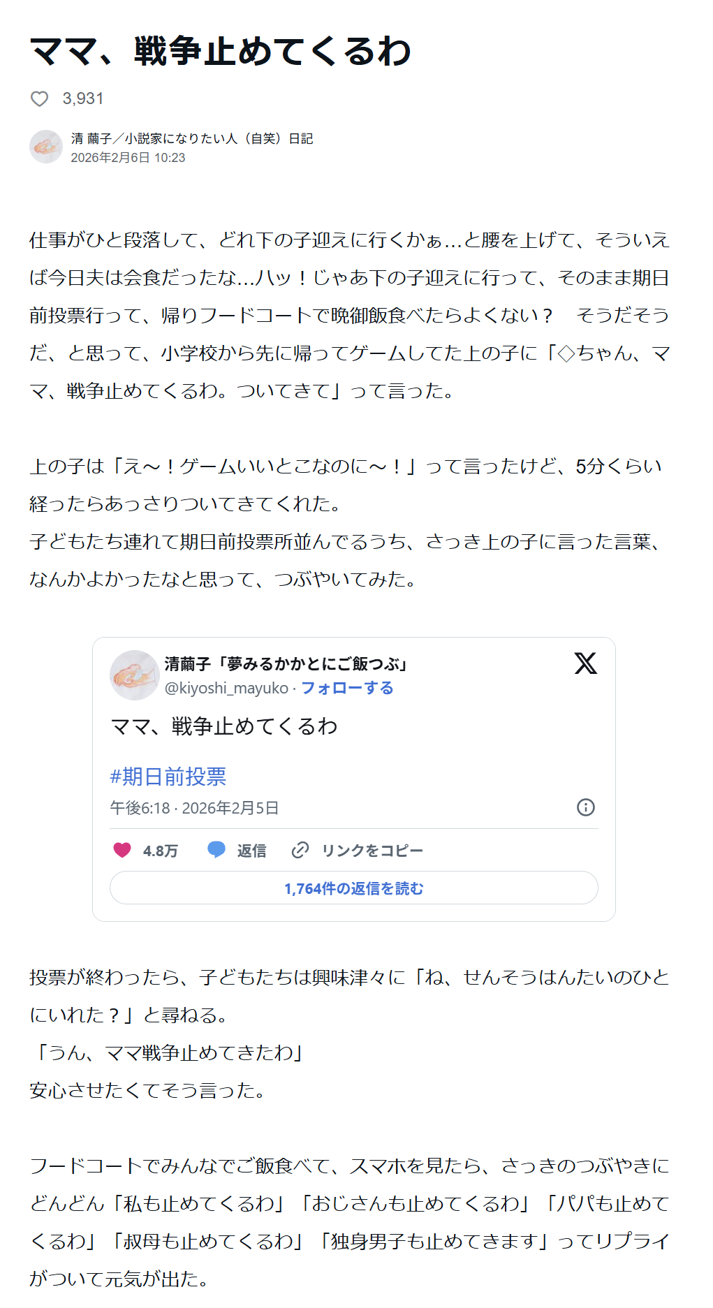 | … | 2無念Nameとしあき26/02/09(月)10:03:41No.1386082084そうだねx22 1770599021274.png-(101157 B) >戦争に反対するママ |