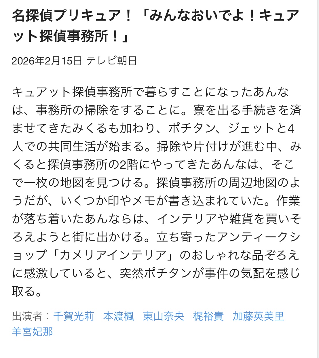 | … | 334無念Nameとしあき26/02/09(月)17:58:09No.1386168935+ 1770627489095.jpg-(225076 B) 当面はジェット先輩加えた3人で探偵事務所を運営しつついつかきっと帰ってくるはずの先輩プリキュアを待つ感じかな |