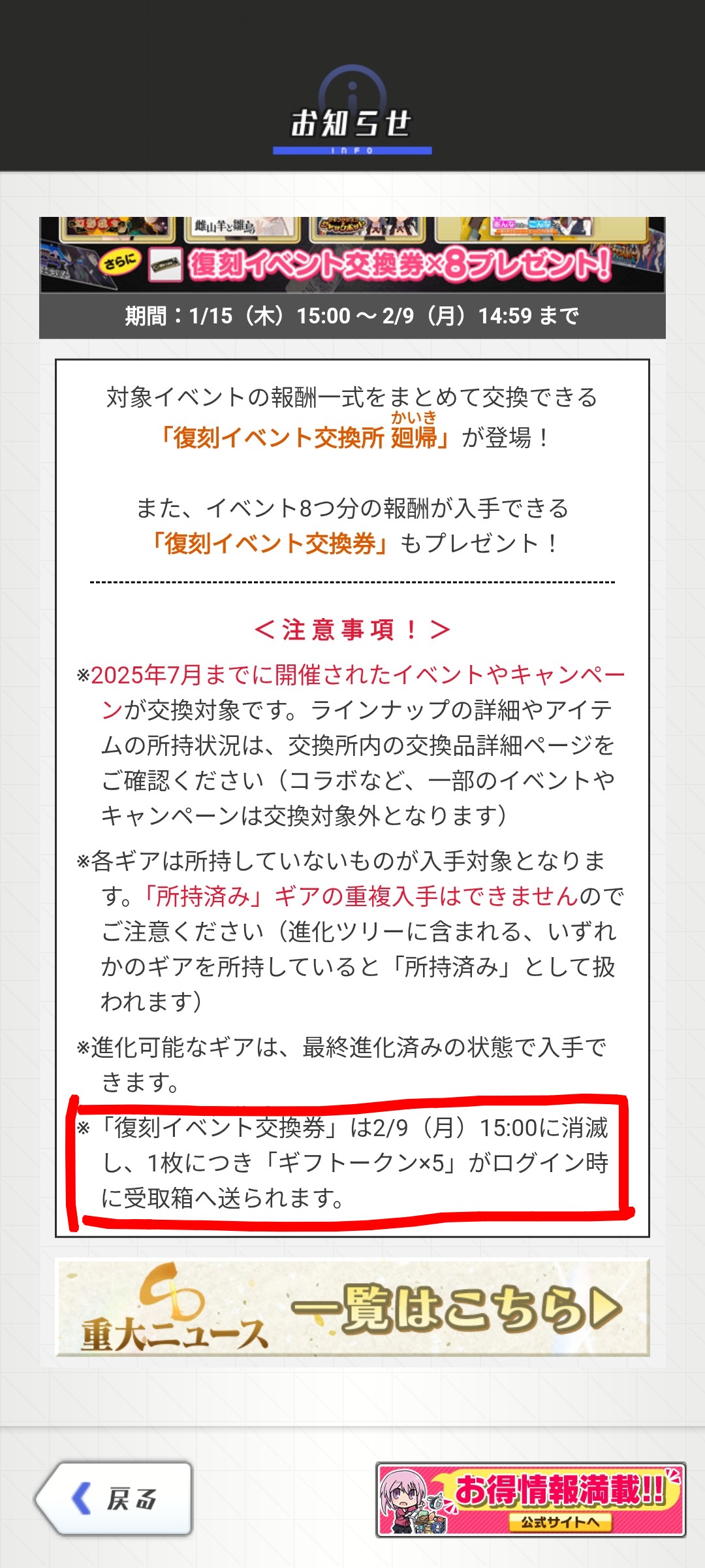 | … | 82無念Nameとしあき26/02/09(月)16:51:55No.1386156174+>なんか期限切れでトークン送られてきたっすけど何か交換し忘れてたっすかね |