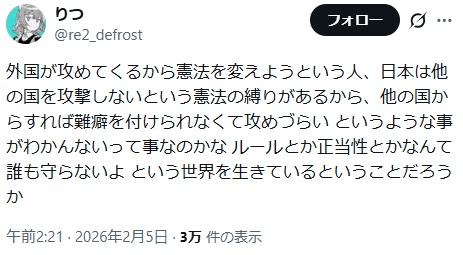 | … | 54無念Nameとしあき26/02/09(月)16:14:03No.1386149751+>憲法は戦争放棄しているけど |