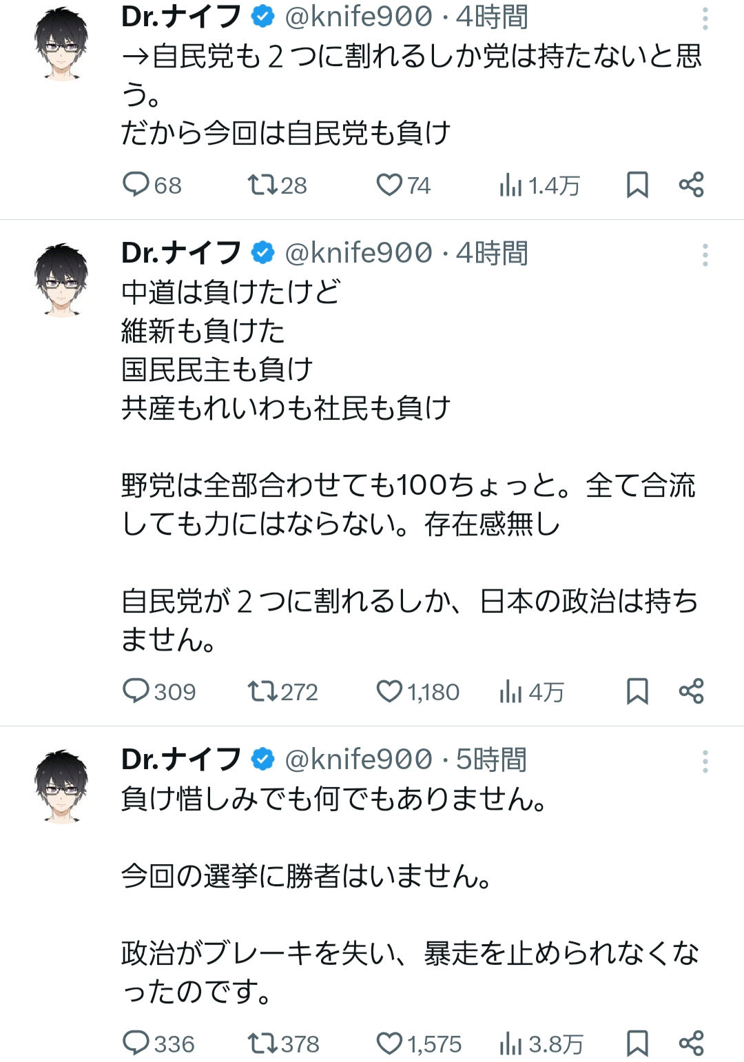 | … | 58無念Nameとしあき26/02/09(月)16:15:16No.1386149961+選挙に勝てばバカの意見が正しことになるなんてないからな |