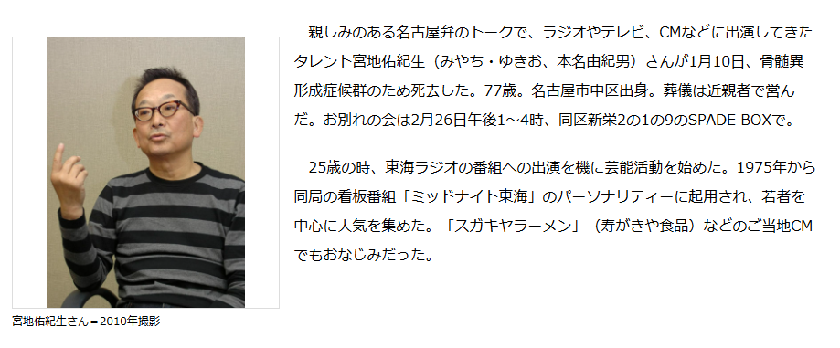 宮地佑紀生 死去
