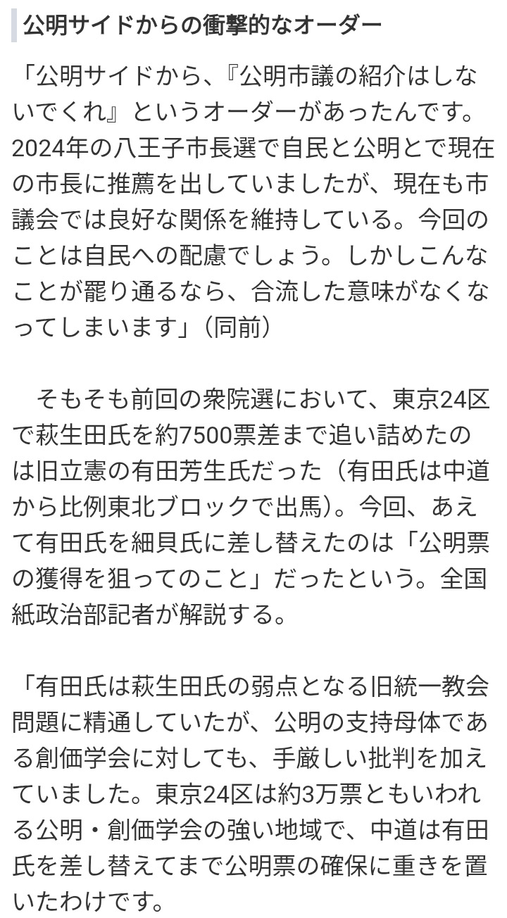 | … | 33無念Nameとしあき26/02/09(月)18:08:04No.1386170991そうだねx3公明が立憲潰しの刺客だったんじゃとしか思えない |