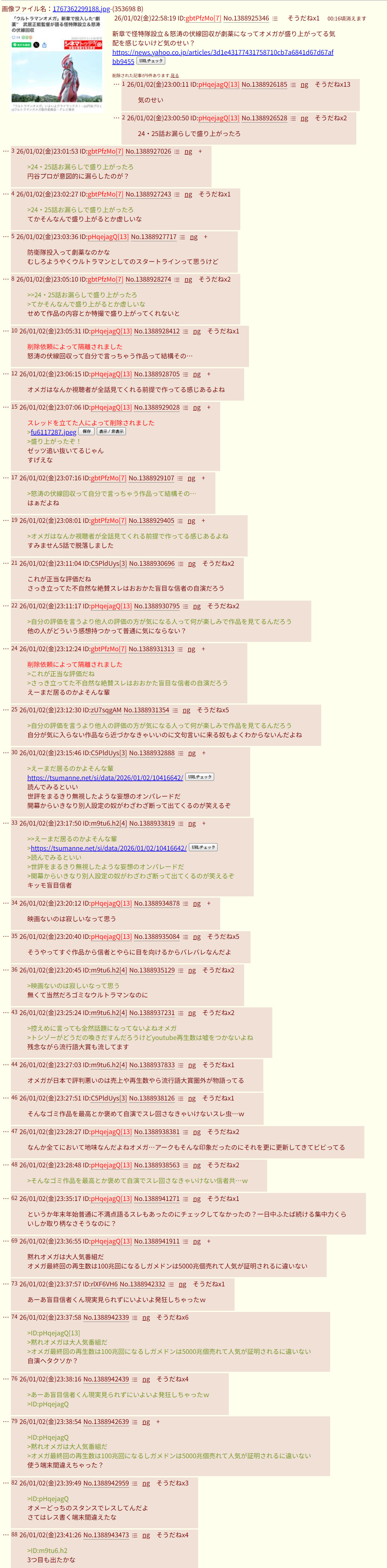 | … | 8無念Nameとしあき26/02/09(月)18:40:07No.1386178814そうだねx15>今の円谷プロと社長のアホさ加減を知れるスレです |