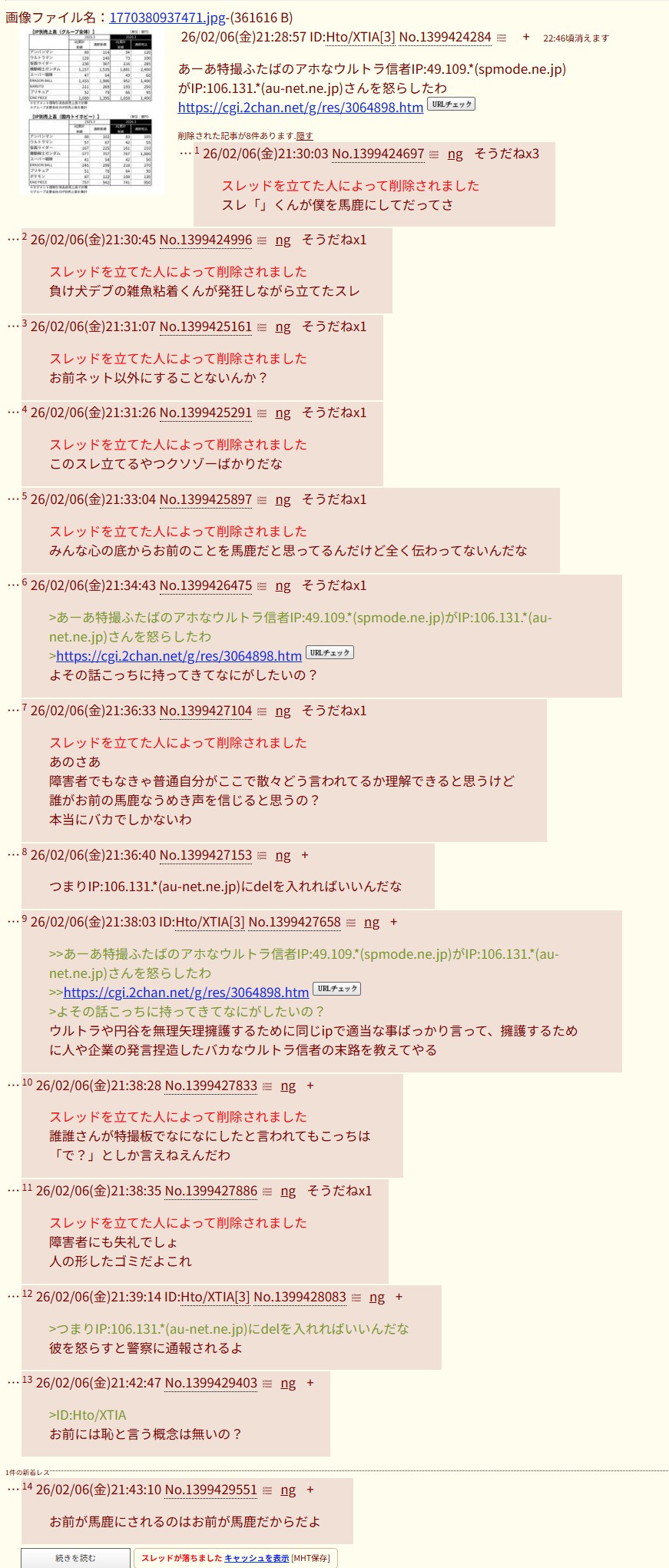 | … | 15無念Nameとしあき26/02/09(月)18:44:47No.1386180033そうだねx2 1770630287828.jpg-(135243 B) >雑魚粘着のアホさ加減を知れるレスです |