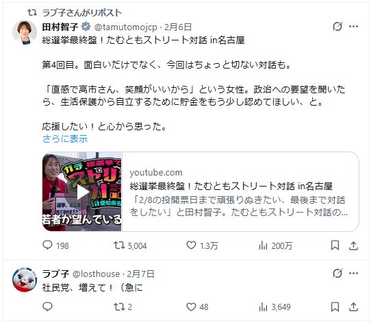 | … | 45無念Nameとしあき26/02/10(火)12:19:36No.1386329666+TBSラジオの選挙後の投書とか聞いてないだろ |