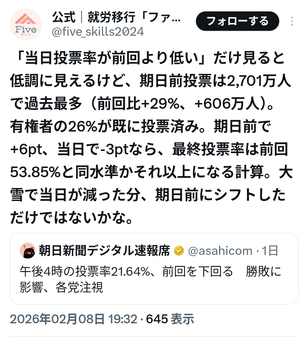 | … | 97無念Nameとしあき26/02/10(火)12:32:24No.1386332390+>議席予測はマジで見るだけ無駄だった |