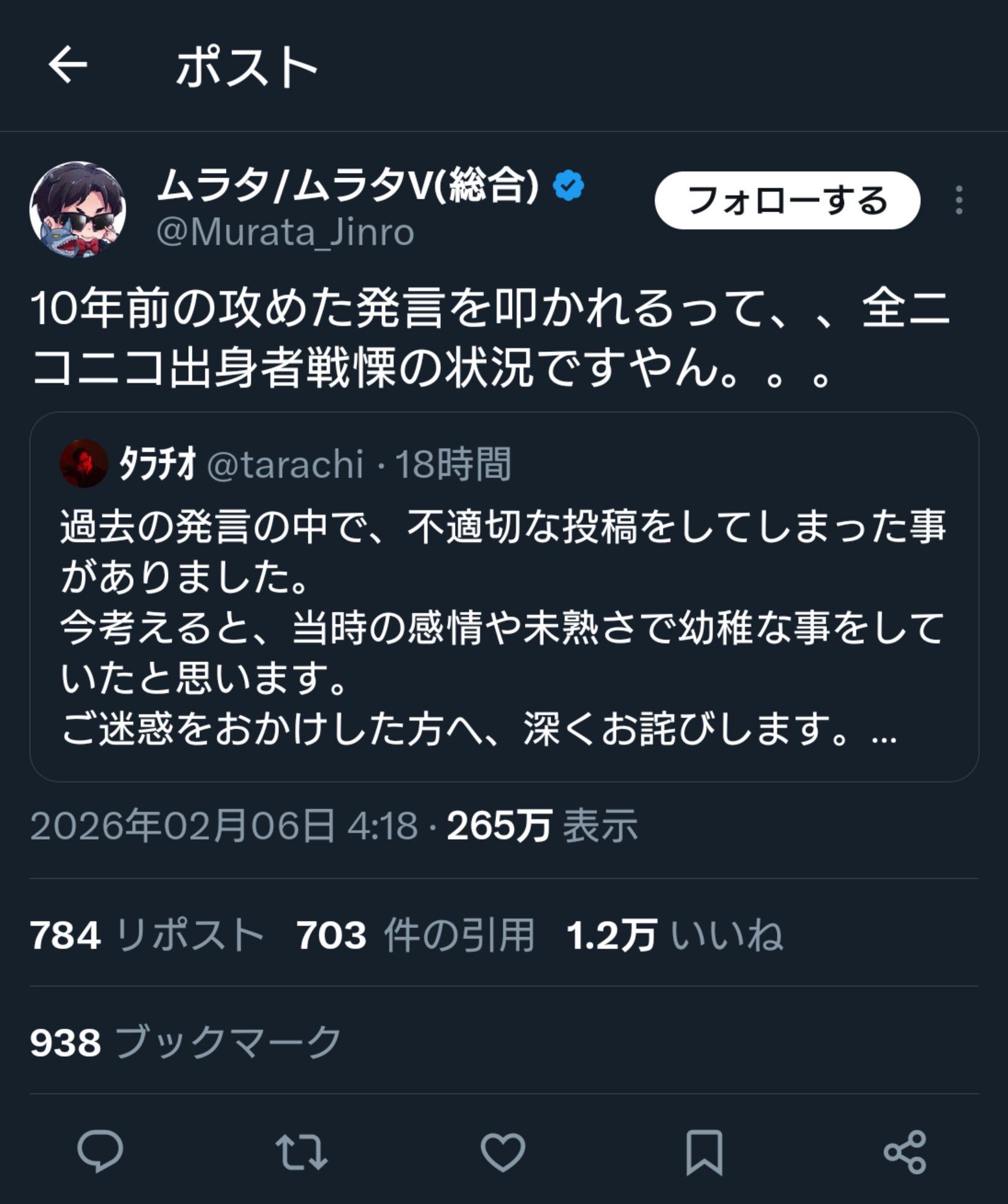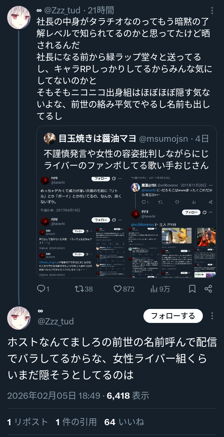 | … | 964無念Nameとしあき26/02/10(火)17:40:06No.1386380678そうだねx2>この騒動でタラチオの顔を知って推しを止めたまんさんには同情する |
