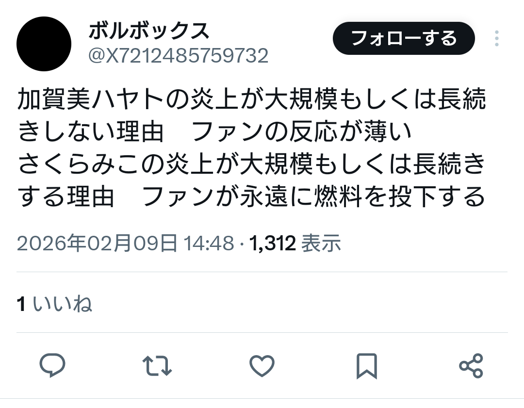 | … | 901無念Nameとしあき26/02/10(火)17:33:39No.1386379485+炎上しても数字には大して影響ないから |