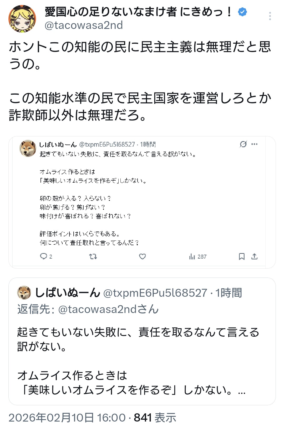 | … | 83無念Nameとしあき26/02/10(火)13:51:28No.1386346066そうだねx32>>✅雑な全体化 |