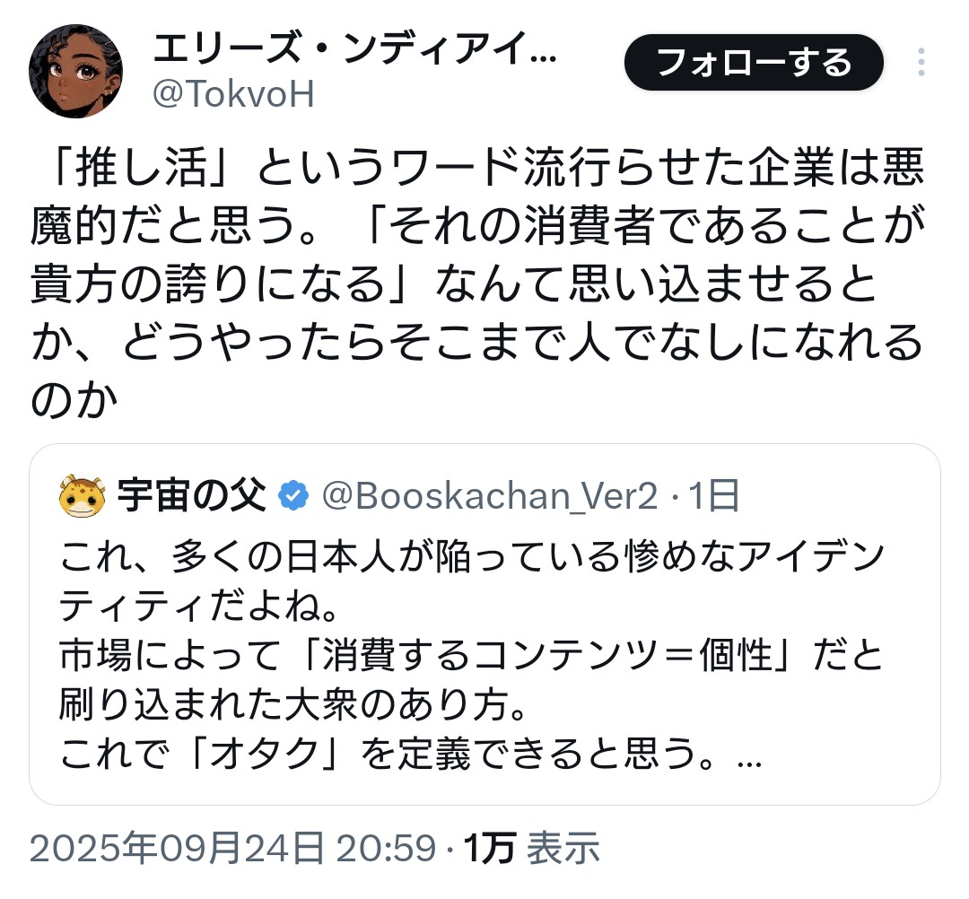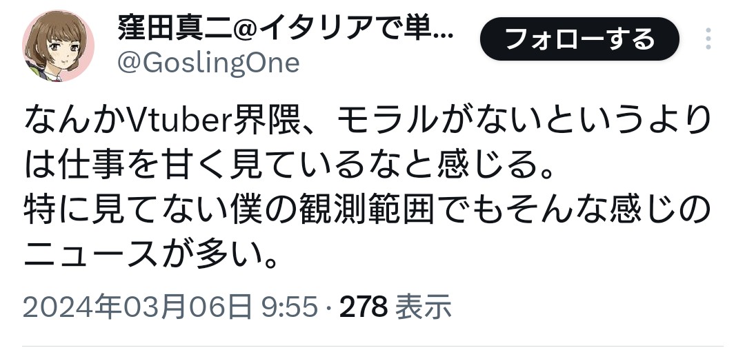 | … | 21無念Nameとしあき26/02/10(火)13:16:14No.1386340707そうだねx7>炎上した所でそいつが推してるやつ(恐らく男V)がスレ画の席に座れる訳でもないだろうと思う |