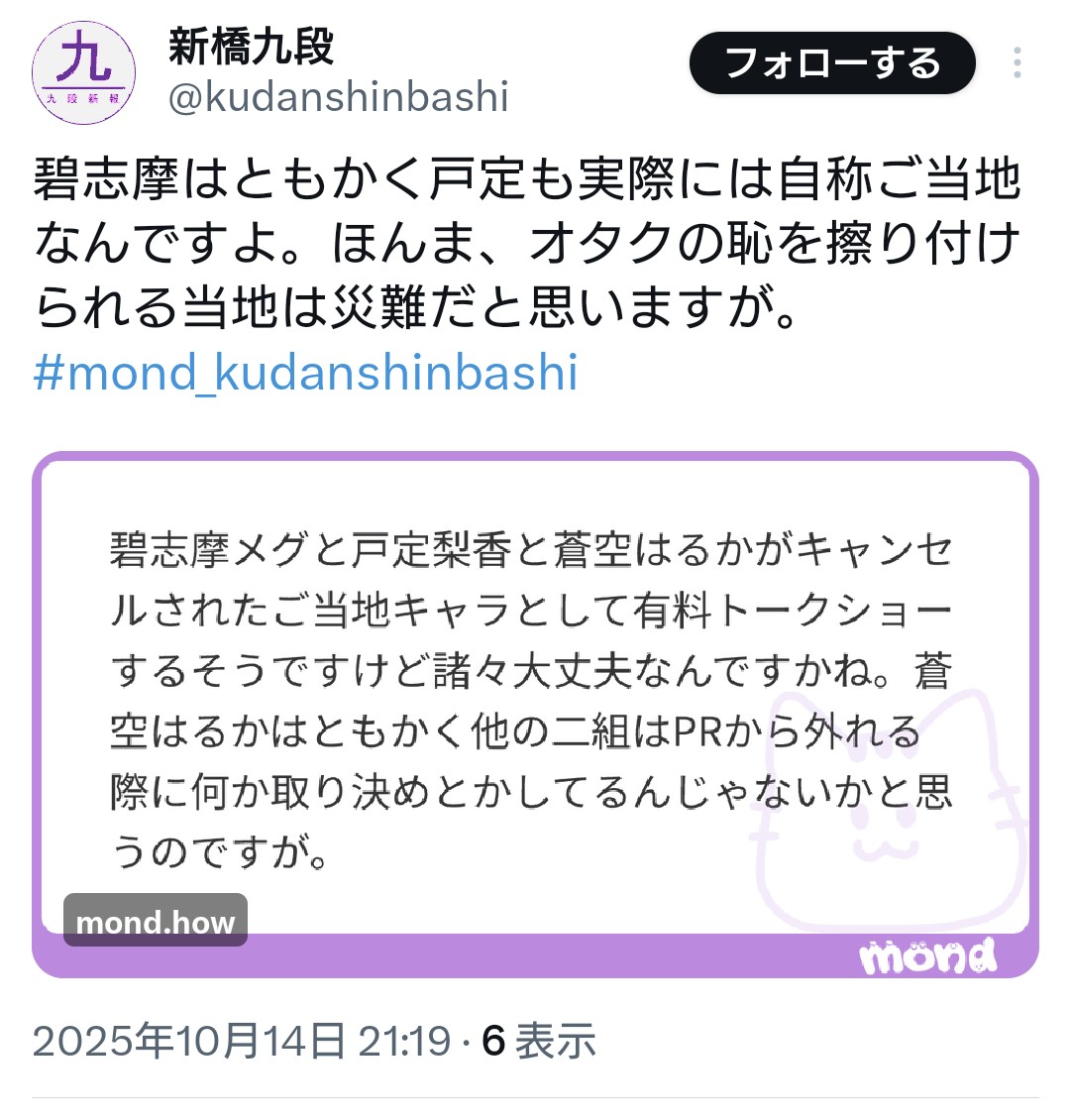 | … | 40無念Nameとしあき26/02/10(火)13:28:21No.1386342586そうだねx14モッシュ賛美はリスナーや運営も含めた気色悪い流れだった |