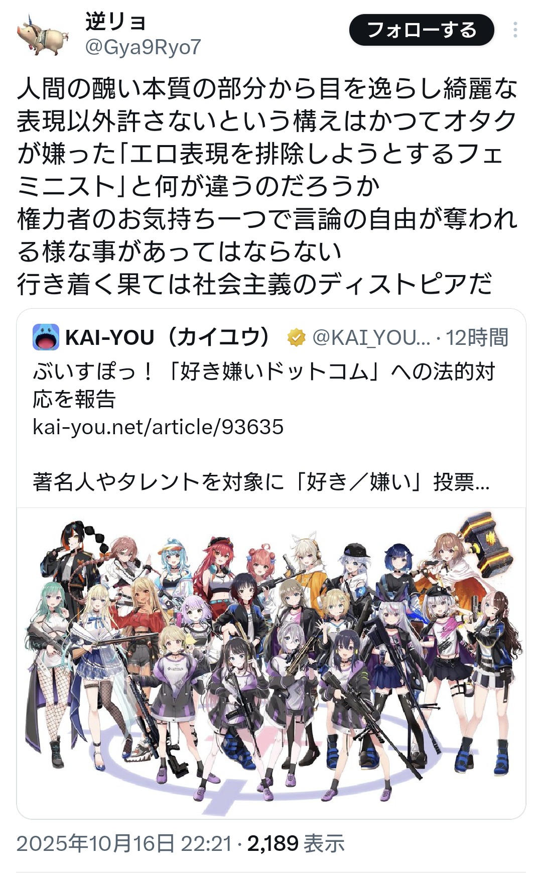 | … | 921無念Nameとしあき26/02/10(火)17:36:01No.1386379961+>にじさんじにこんな思想のライバーがいるなんて怖いです |