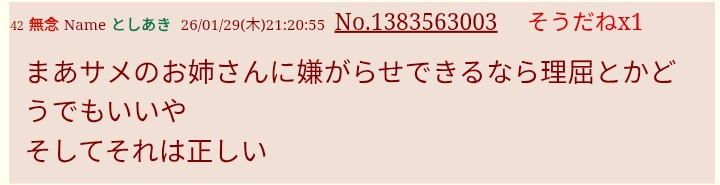 | … | 141無念Nameとしあき26/02/10(火)18:41:42No.1386393088+>言っとくけど5分以内にレスなかったら糖質の負けだからね |