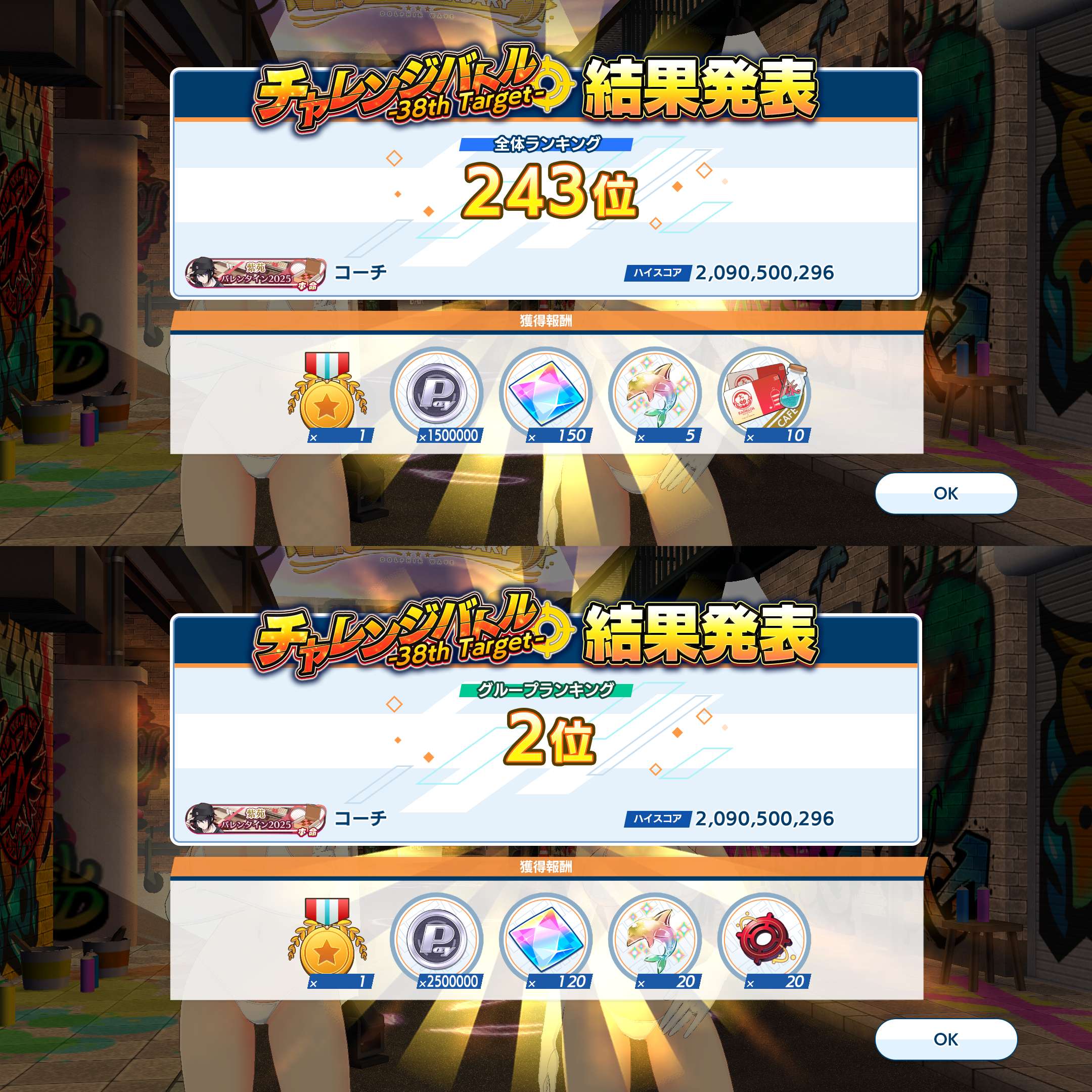 | … | 21無念Nameとしあき26/02/10(火)18:37:37No.1386392136+チャレバトグループ1位でも狙ってみるかと思ったら1位は50億でダメだった |