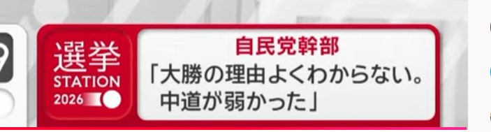 | … | 83無念Nameとしあき26/02/10(火)21:26:16No.1386439600+自民は選ばれたのではなく中道2NOを突きつけた有権者の受け皿になったというのが大方の見方だろうが当人達がそれを理解してない |