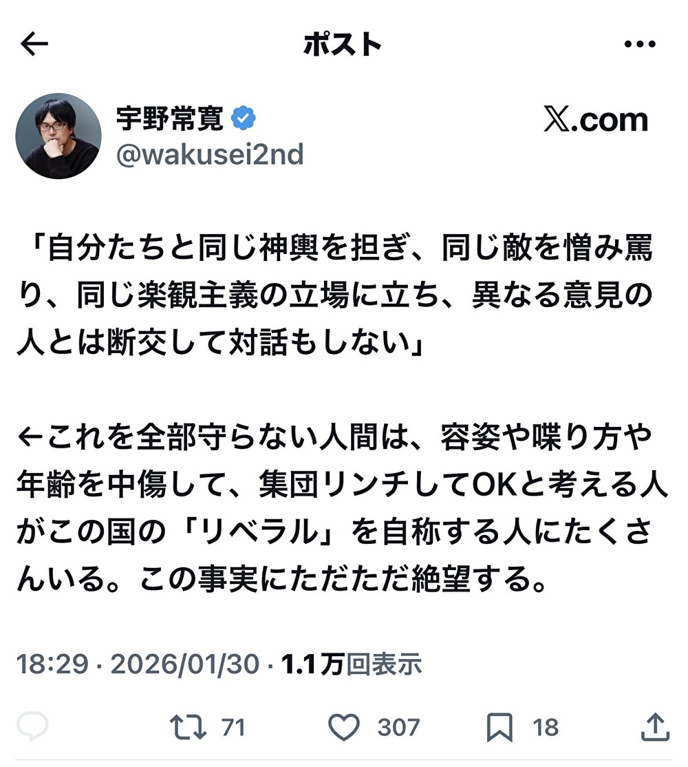| … | 931無念Nameとしあき26/02/10(火)22:14:22No.1386453980そうだねx2>まともなサヨっていないんだね |