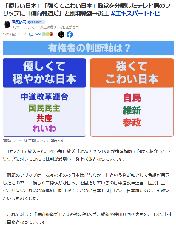 | … | 18無念Nameとしあき26/02/10(火)21:17:25No.1386436981そうだねx1なぜ政治家はテレビ局のデマに罰則を与えないのか |