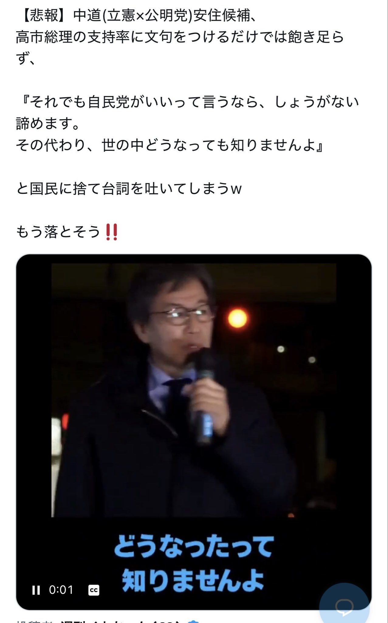 | … | 945無念Nameとしあき26/02/10(火)22:15:00No.1386454155+>立憲議員が会見で「天は我らを見放したのか」って言ってたが国民の事最期まで直視出来なかったんかなぁ |