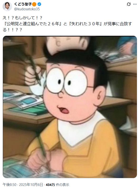 | … | 10無念Nameとしあき26/02/10(火)21:15:04No.1386436267そうだねx4元公明党「いやー・・・やっぱ保険掛けといて良かったわあ・・・!」 |