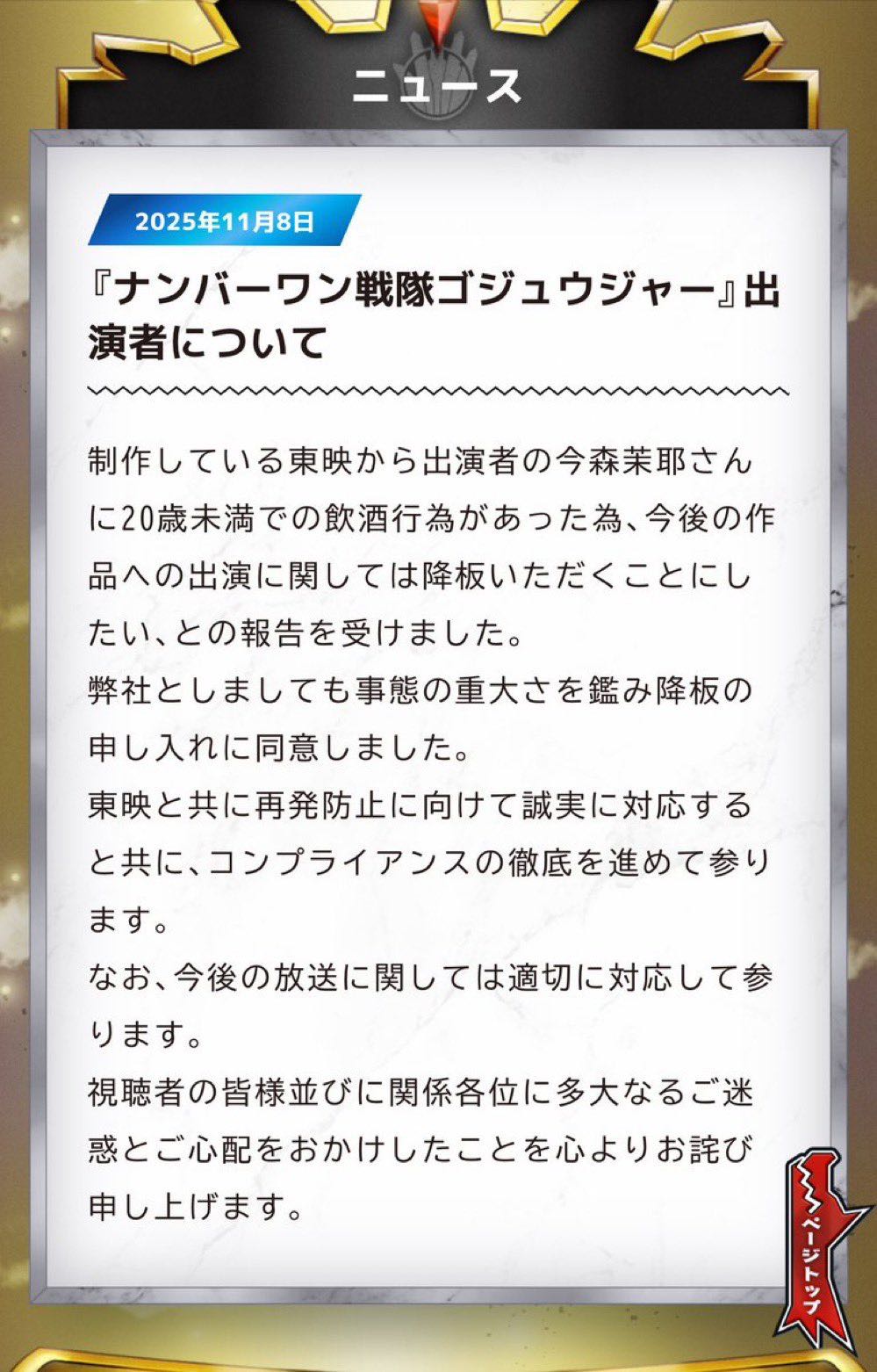 | … | 58無念Nameとしあき26/02/10(火)22:14:09No.1386453910+不倫だけでは降板に至らなかったから東映側から未成年者飲酒のリークがあった |