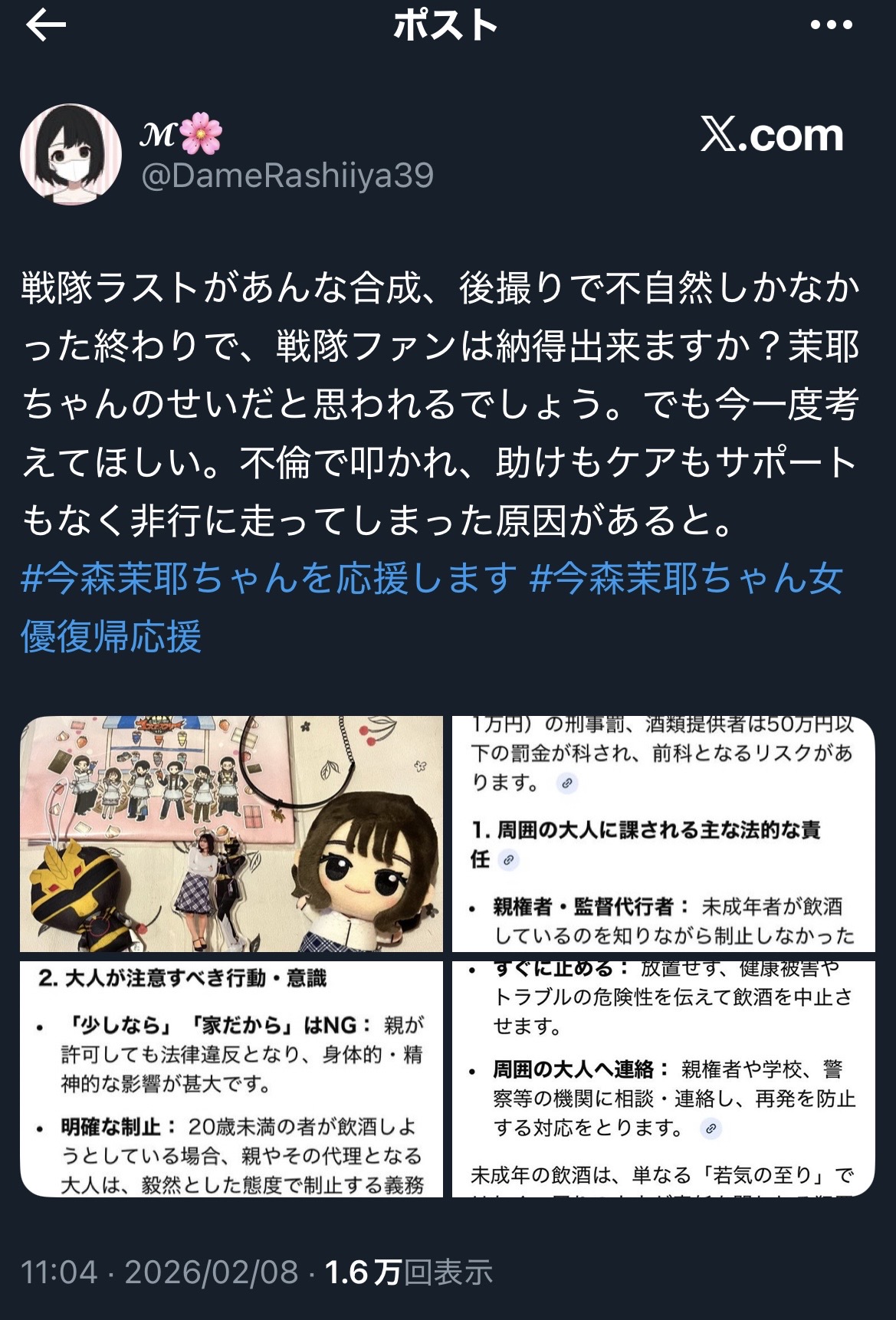 | … | 39無念Nameとしあき26/02/10(火)22:00:49No.1386449943+教育に関しては事務所じゃなくて親の責任だろ |