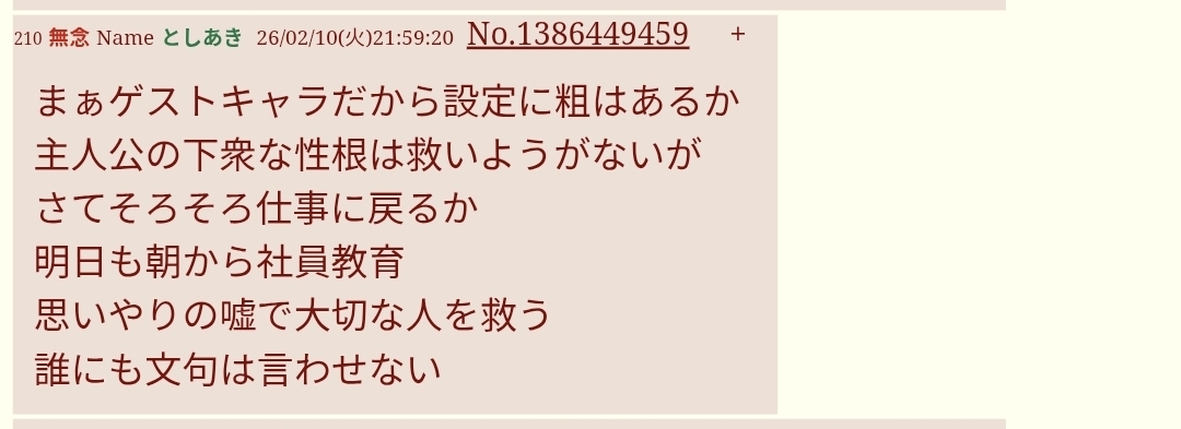 | … | 30無念Nameとしあき26/02/10(火)22:44:29No.1386462335そうだねx1>ID:G.Q/FjyI |