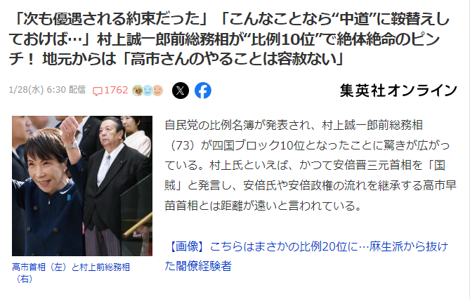 | … | 824無念Nameとしあき26/02/11(水)10:25:57No.1386541197+>選挙で高市の軍門に下ったと思われて |