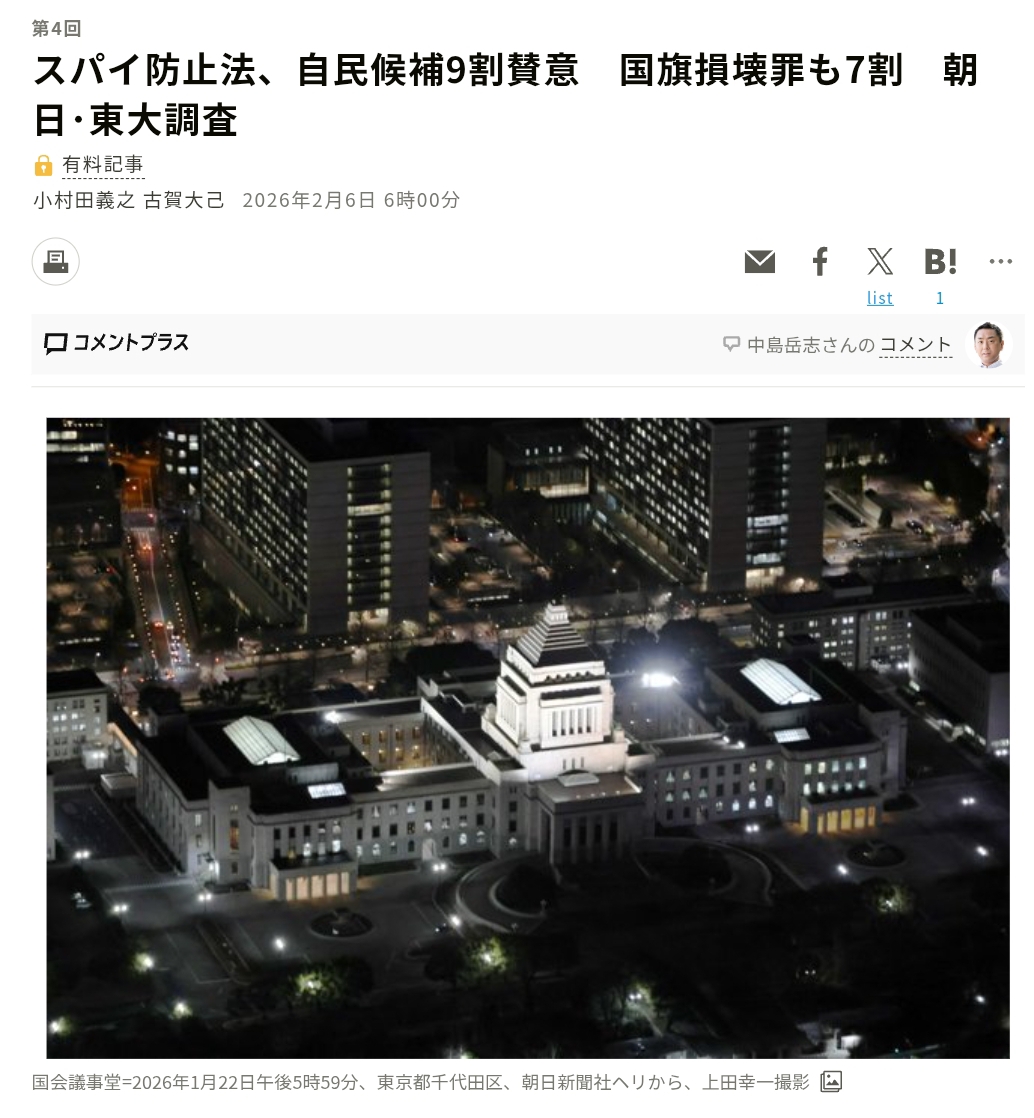 | … | 70無念Nameとしあき26/02/11(水)01:32:58No.1386497115そうだねx24ともかくスパイ防止法が先決だな |