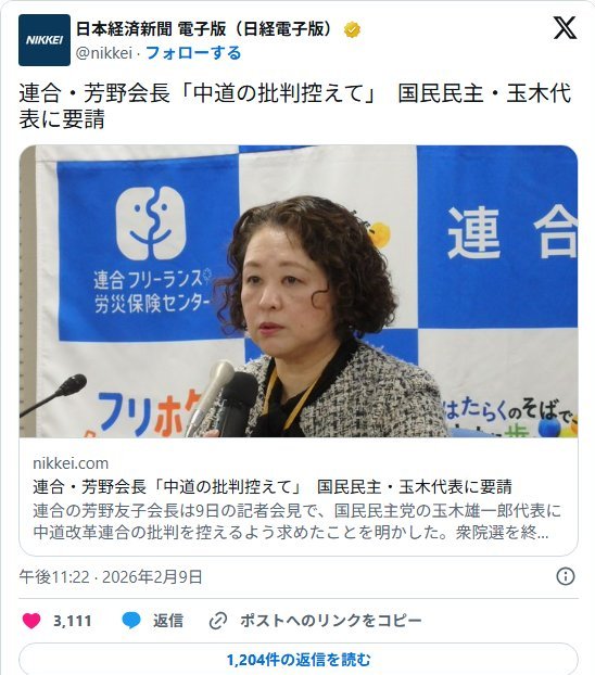 | … | 432無念Nameとしあき26/02/11(水)10:23:36No.1386540761+なぜ中道を支持しない |