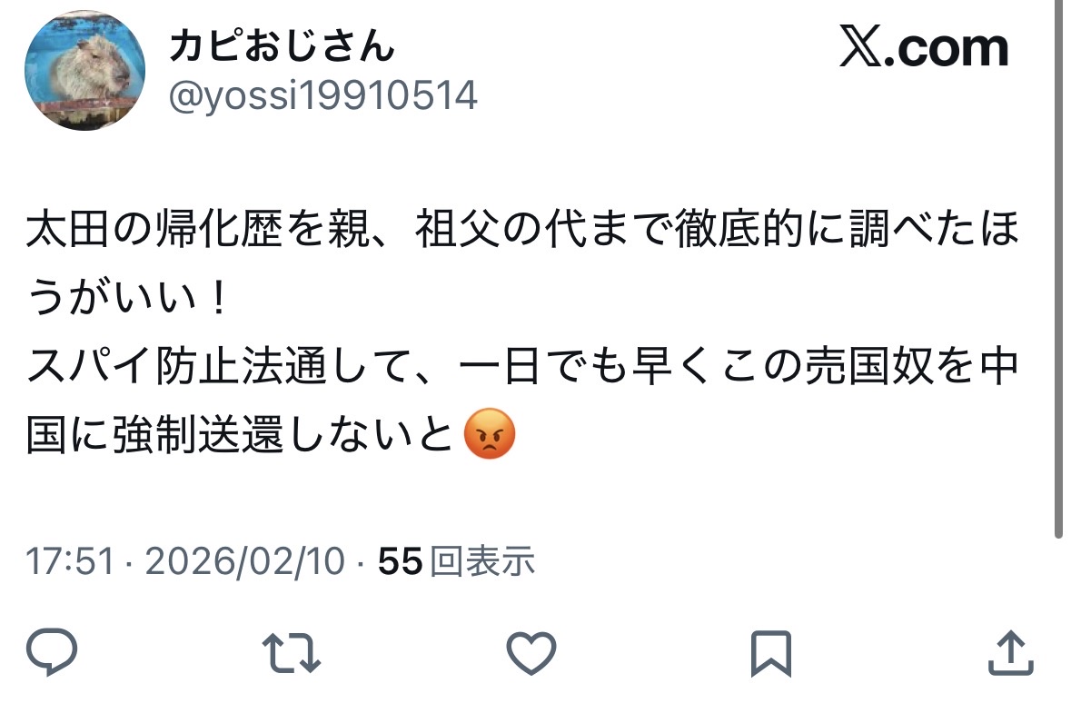 | … | 4無念Nameとしあき26/02/11(水)11:43:57No.1386555701そうだねx5べつに帰化じゃなくても反日はいるだろ |