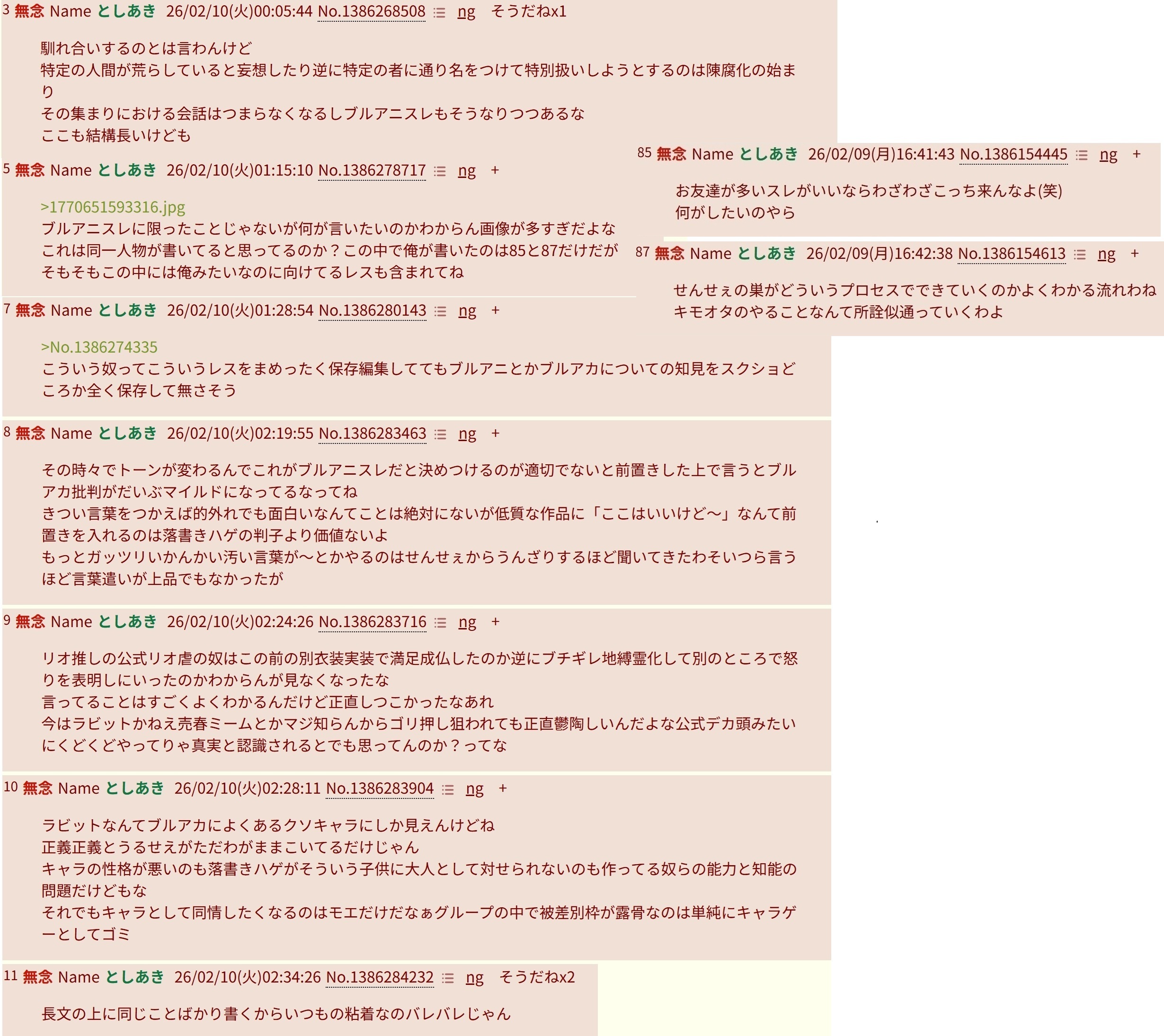 | … | 57無念Nameとしあき26/02/11(水)16:10:10No.1386612934+やっぱりブルアニスレも青マケと同レベルわよ |