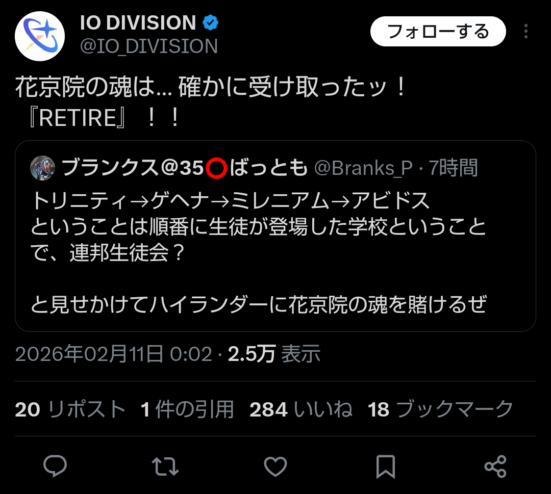 | … | 55無念Nameとしあき26/02/11(水)16:06:39No.1386612210+>親だか公式だか知らんがRTされて唯一認められた本物のファン()って奴 |