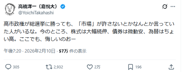 | … | 145無念Nameとしあき26/02/11(水)16:55:02No.1386622448+>さっそく昨日のBS番組で高市一強は危険だとかやりだしたらしいな |