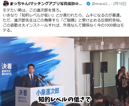 | … | 941無念Nameとしあき26/02/11(水)17:37:34No.1386631779+>昨日進次郎のマスゴミ打ち負かすのカッコよく見えるのずるい |