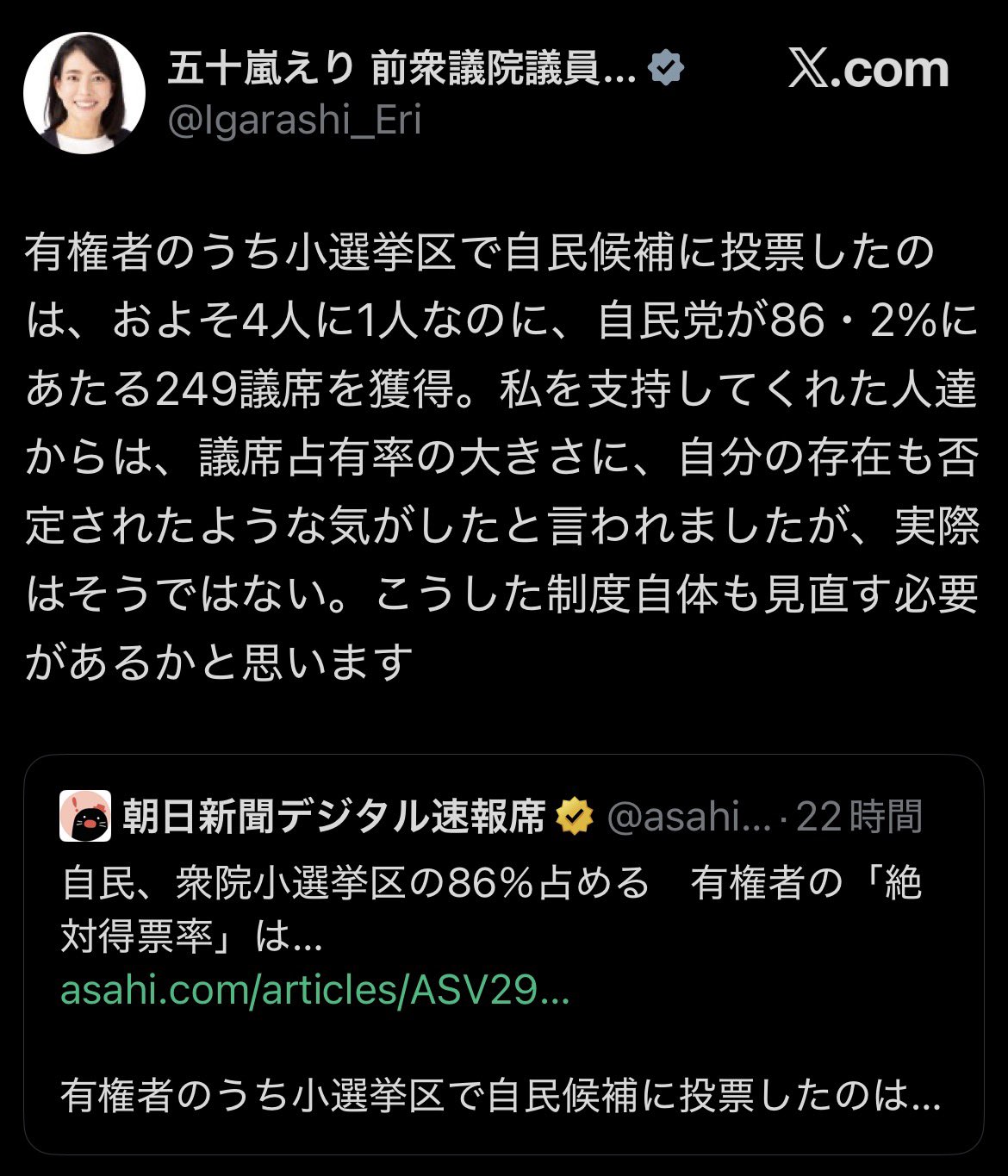 | … | 933無念Nameとしあき26/02/11(水)17:36:07No.1386631463+>小選挙区で生き残った面子がこれだから泉が立候補しないとなるとそりゃね… |